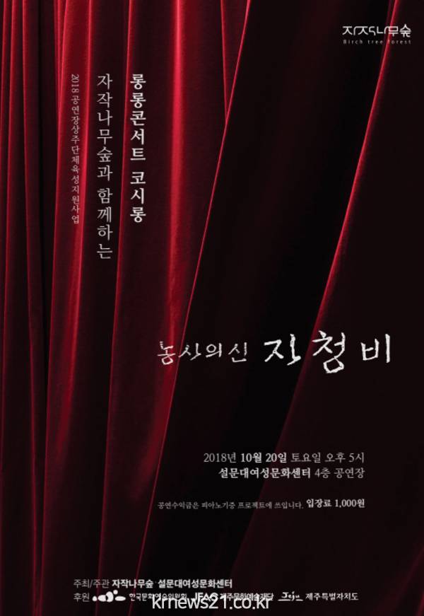 ▲ (사진=제주자치도청)설문대여성문화센터(소장고춘화)와 자작나무숲(대표이현미)는 10월 20일(토) 오후 5시에 설문대여성문화센터 4층 공연장에서 자작나무숲과 함께하는 롱롱콘서트 코시롱을 개최한다.