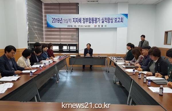 정읍시(시장 유진섭)가 지난 17일 시청 중회의실에서 정부합동평가 목표 미달성 팀장(10명)과 지표담당자(10명)가 참석한 가운데 2018년 지자체 정부합동평가 대비 실적향상 보고회를 가졌다.