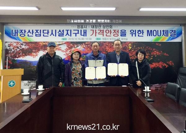 정읍시는 지난 16일, 가을 행락철을 맞아 내장산 집단시설지구내 식품접객업소 및 숙박업소에 대한 바가지요금근절을 위한 업무협약(MOU)을 내장산상인회(회장 박노을)와 체결했다고 밝혔다.