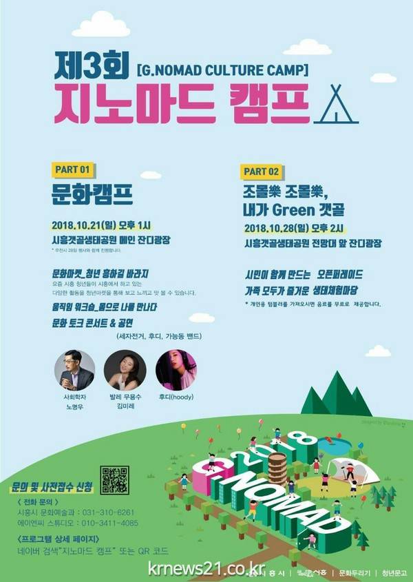 시흥시(시장 임병택)는 10월 21일과 28일 갯골생태공원에서 <</span>제3회 지노마드 캠프(G.Nomad Camp)>를 개최한다.