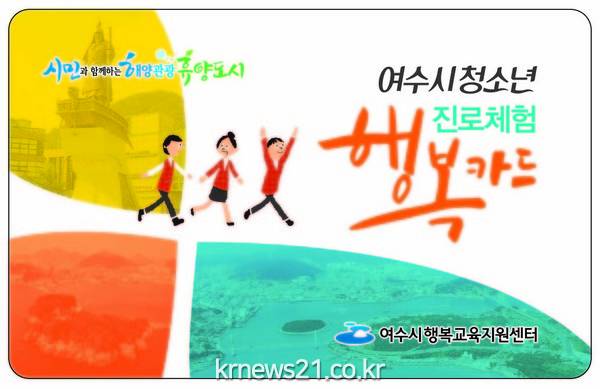 여수시(시장 권오봉)가 중학교 1학년 청소년들에게 10만 원의 포인트가 적립된 행복카드를 발급해 진로체험 기회를 제공한다.