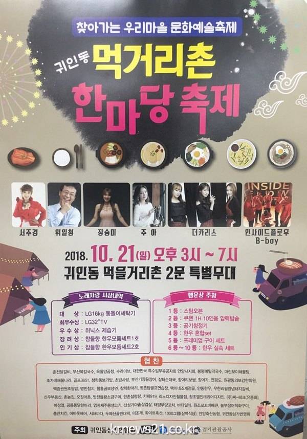 귀인동 행정복지센터(동장 김원우)는 오는 21일 귀인동 먹거리 촌 2문 특설무대에서 ‘먹거리 촌 한마당 축제’를 개최한다고 밝혔다.