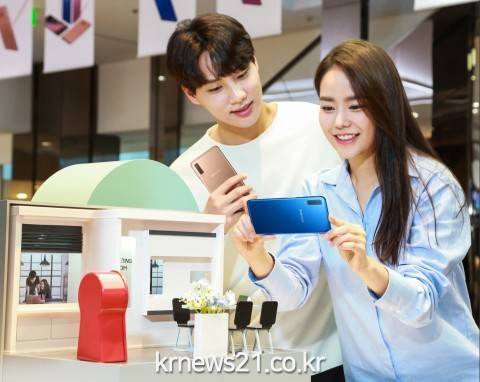 삼성전자가 갤럭시 스마트폰 최초로 트리플 카메라를 탑재한 영 프리미엄 스마트폰 ‘갤럭시 A7(Galaxy A7)’을 23일 국내에 출시한다고 밝혔다.