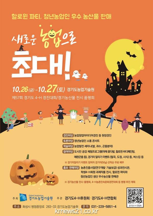 경기농업 혁신 도모를 위한 농업인들의 잔치인 ‘새로운 농업으로 초대! 농업기술대전’ 페스티벌이 오는 26일부터 27일까지 이틀간에 걸쳐 경기농업기술원과 농업교육과학관 일원에서 개최된다.