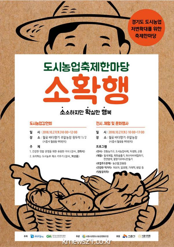 경기도 도시농업 저변확대를 위한 <</span>도시농업축제한마당>은 경기도의 도시농업 우수 활동 사례를 홍보하고 자연으로부터 멀어진 도시민들이 농업을 체험할 수 있도록 하기 위해 기획됐다. 도시농업 관련 강연회와 전시, 체험, 문화행사 등을 통해 이웃과 함께할 수 있는 축제의 장이 될 것으로 기대된다.
