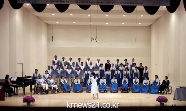 수원시 장애인합창단이 23일 수원시 청소년문화센터 온누리 아트홀에서 제6회 정기연주회를 열었다.