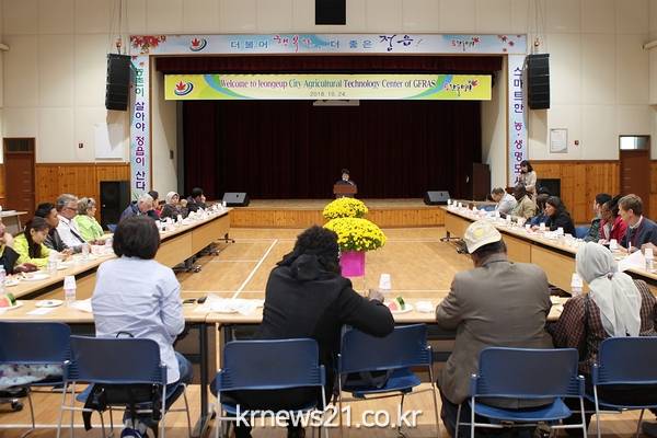 지난 24일 정읍시농업기술센터(소장 문채련, 이하 농업기술센터)에는 선진농업기술을 배우기 위하여 세계농촌지도포럼에 참여하는 독일, 스위스, 베트남, 필리핀 등 24개국 39명의 농업전문가들이 방문했다.