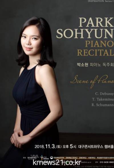 (재)대구문화재단(대표 박영석)의 4기 청년예술가로 선정된 피아니스트 박소현의 독주회가 11월 3일(토) 오후 5시 대구콘서트하우스 챔버홀에서 열린다.