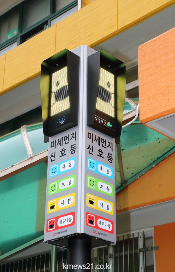 이번에 설치된 ‘미세먼지 신호등’은 미세먼지로 인한 대기오염 피해를 줄이고 구민 건강을 보호하기 위한 사업의 일환으로 지역 내 KB국민은행이 기부한 5천만 원을 재원으로 설치됐다.