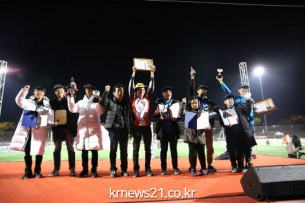 한편 화려한 엘이디 조명으로 장식된 경기장에서 야간경기로 치러진 ‘2018 과천 드론레이싱 월드컵’에서는 국내외 최강 드론 레이싱 선수 100여명이 참가한 가운데 알렉스(미국) 선수가 우승을 차지했다. 이어 강창현, 이상훈 선수가 각각 2위와 3위에 이름을 올렸다. 이날 디펜딩 챔피언으로 우승이 점쳐졌던 김민찬 선수는 결승에서 대기시간 초과로 실격처리되어 아쉽게 4위로 기록되었다.