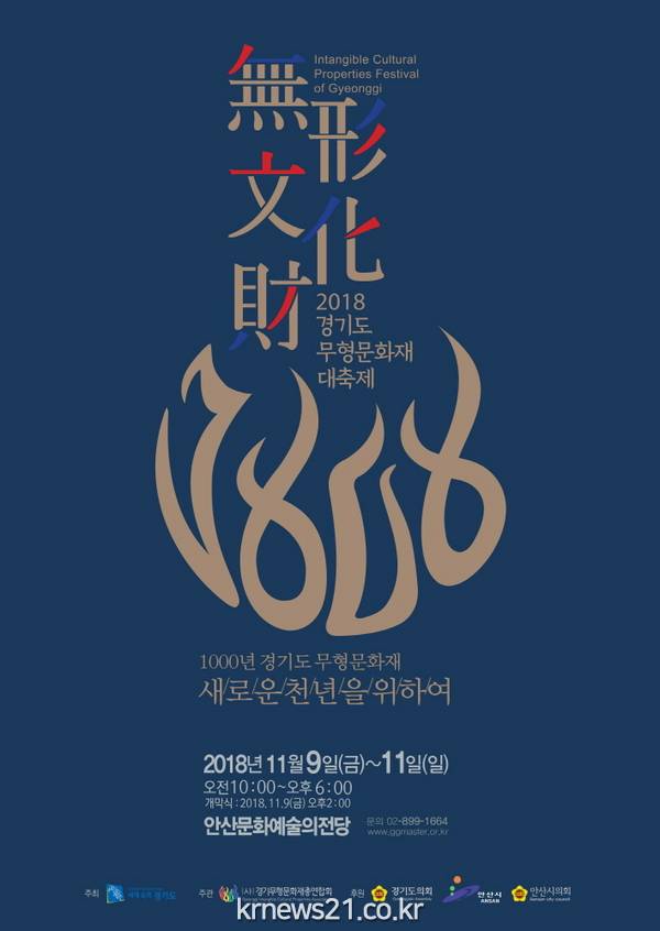 경기도는 9일부터 11일까지 ‘1000년 경기도 무형문화재 새로운 천년을 위하여’라는 주제로 안산문화예술의전당에서 ‘2018년 경기도 무형문화재 대축제’를 개최한다.