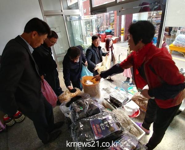 1일 일자리경제과 직원 10명은 강구시장을 방문해 생선, 채소, 나물 등을 구입하며 시름에 빠져 있는 상인들에게 작은 보탬과 힘이 될 수 있는 시간을 가졌다.