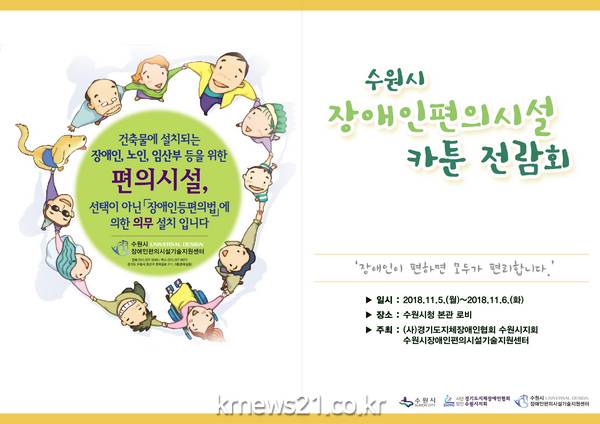 수원시와 수원시 장애인편의시설기술지원센터는 5~6일 시청 본관 로비에서 장애인 편의시설에 대한 올바른 설치와 이용을 알리는 카툰(cartoon, 만화) 전람회를 연다.