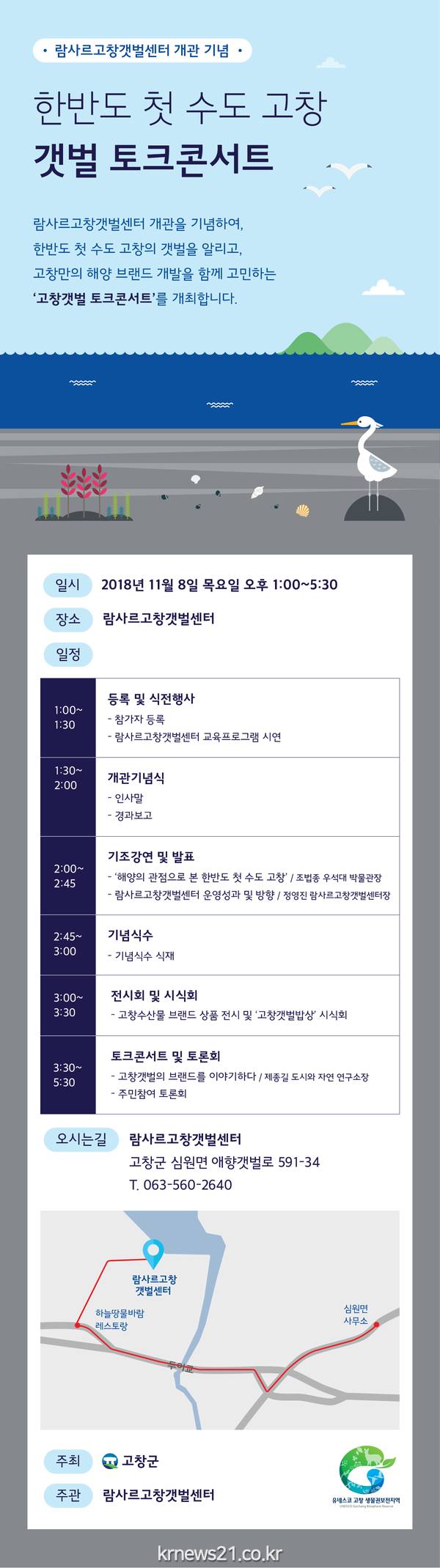 (전북/뉴스21)김문기기자=고창군(군수 유기상)이 오는 8일 람사르고창갯벌센터 개관 기념 ‘한반도 첫 수도 고창갯벌 토크콘서트’를 개최한다.