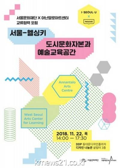 포럼의 주제는 ‘서울-헬싱키 도시문화자본과 예술교육공간’이며 서울과 헬싱키 양 도시의 예술교육정책과, 서울문화재단·아난딸로아트센터의 프로그램 사례를 통해 도시의 지역 특성에 맞는 예술교육공간에 대해 논의할 예정이다.