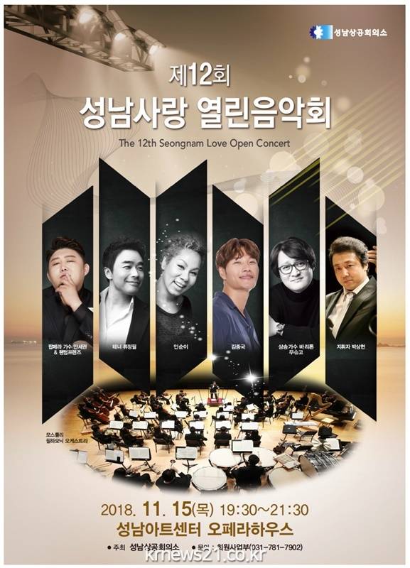 성남상공회의소(회장 박용후)는 오는 11월 15일(목) 오후 7시 30분부터 성남아트센터 오페라하우스에서 ‘제12회 성남 사랑 열린음악회’를 개최합니다.