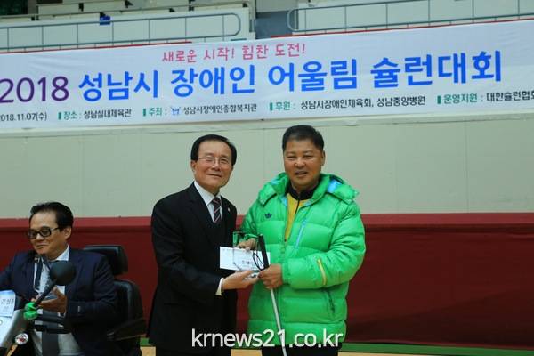 성남시장애인종합복지관(관장 채정환, 이하 성남장복)은 성남지역 장애인의 생활체육을 확산시키기 위한 일환으로 성남시장애인체육회(회장 은수미-성남시장)의 지원을 받아 ”2018 성남시 장애인 어울림 슐런 대회“를 개최하였다. 이 대회는 통합 장애부, 발달 장애부, 뇌 병변 장애부, 시각 장애부, 어울림부(2인조 경기) 등 5개 부문 280팀 320명의 선수와 내빈 및 자원봉사자 등 총 500여명이 참여하였다.