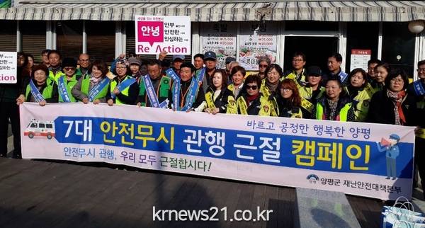 이번 캠페인은 양평군을 비롯해, 양평소방서, 양평군여성단체협의회, 지역자율방재단, 양평군 새마을지회, 양평재난통신지원단, 양평군자원봉사센터, 대한적십자봉사회, 안전모니터봉사단, 한국농어촌공사, 전기안전공사 북동부지사, 바르게살기양평군협의회, 양평공사, 양평군 안전보안관 등 약 100여명이 참여했다.