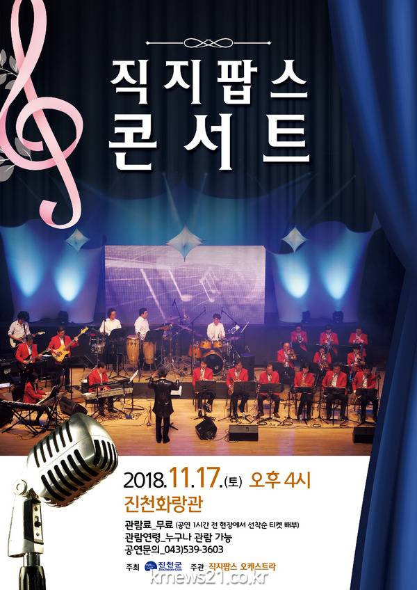 ▲ (사진=진천군청)‘직지팝스 오케스트라’의 주관하는 가요, 재즈, 성악 등이 어우러진 고품격 음악회, <직지팝스 콘서트>가 오는 17일 오후 4시에 진천화랑관에서 공연된다.