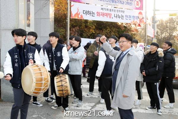 엄태준 이천시장이 2019년도 대학수학능력 시험일인 15일 관내 시험장 앞에서 수험생 들을 격려했다.