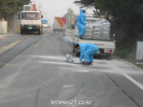 군은 지난 12일부터 14일까지 가금농가 132호에 생석회 3,759포(75t)를 공급하고 농장진입로, 축사 바닥, 울타리 둘레 등에 1㎡당 500~600g을 2~5cm 두께로 살포하도록 농가지도활동을 펼쳤다.