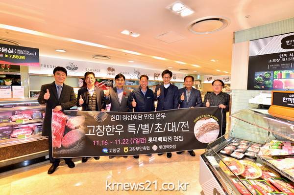 (전북/뉴스21)김문기기자=지난해 미국 트럼프 대통령이 방한 때 국빈만찬에 오른 명품 고창 한우가 16일부터 오는 22일까지 전국 롯데백화점 33개 전점에서 특별 판매된다.