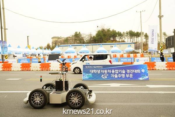 ‘대학생 자동차 융합기술 경진대회’도 열렸다. 자율주행차가 다양한 미션들을 수행하는 ‘자율주행 부문’에서 대회가 진행됐으며 협로 차선 통과, 유턴, 주차 미션 등을 가장 빠르게 통과한 연세대학교 SBTM팀이 우승했다.