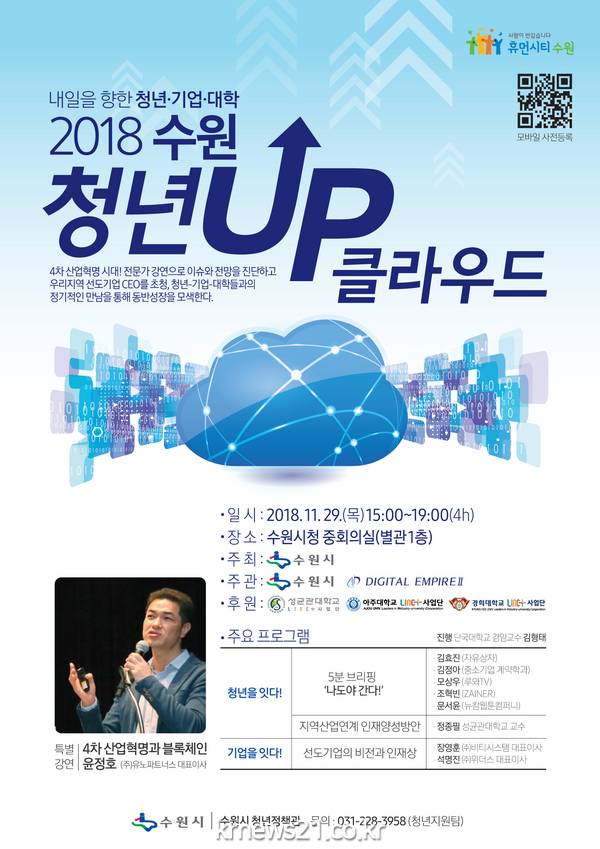 수원시와 ‘디지털 엠파이어Ⅱ협의회’는 ‘2018 청년UP(업) 클라우드’에 참가할 수원 청년 100명을 27일까지 모집한다.