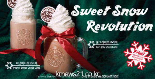 ▲ (사진=탐앤탐스 홈페이지 캡처)커피전문점 탐앤탐스는 겨울 신메뉴 ‘스위트 스노우 레볼루션’ 2종을 출시했다고 19일 밝혔다.