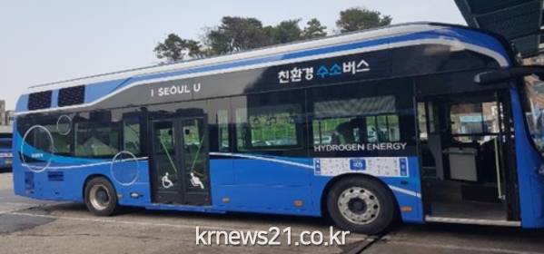 ▲ (사진=산업부)현대자동차 수소버스 1대가 21일부터 서울특별시 시내버스 405번(염곡동~서울시청 구간, 왕복 43.9km) 노선에 투입된다.