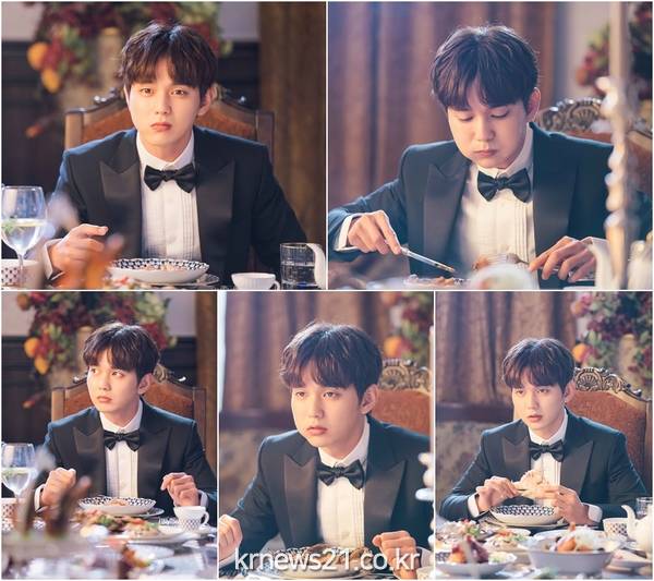 ▲ (사진=슈퍼문 픽처스)SBS ‘복수가 돌아왔다’ 유승호가 나비넥타이 턱시도를 입고 양볼 가득 음식을 담은 채 ‘멍뭉미’ 매력을 발산하는, ‘강복수의 만찬’ 현장이 포착됐다.