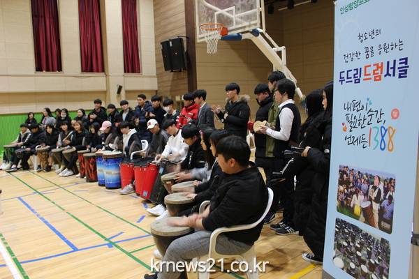 ▲ (사진=양평군청)양평군청소년상담복지센터(센터장 임정숙)는 11월 20일 관내 고등학교 3학년들을 대상으로 한 “두드림 드럼서클” 인성함양프로그램을 관내 고등학생(총 80명)을 대상으로 실시했다.