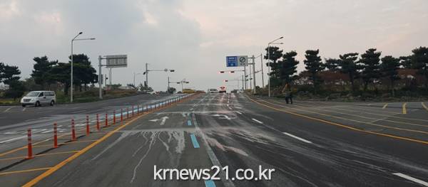 특히 지난겨울 유래 없는 폭설로 도로 결빙에 따른 도민과 관광객들이 도로 안전사고 및 이용 불편을 초래함에 따라, 결빙 취약구간인 공항로, 서광로에 맞춤형 도로제설 장비인 염수자동살포시설(살포구간 1㎞ : 공항로 400m, 서광로 500m, 지선 100m) 설치를 완료했다.