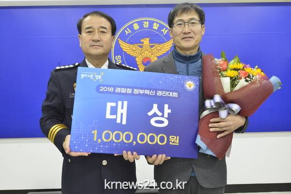 시흥경찰서(서장 이재술)는 11월 21일(수), 시흥경찰서 수사과(경위 전원주)에서 추진한 ‘프라이버시 콜’(주차 안심번호) 서비스가 경찰청 주관, 2018 「정부 혁신 경진대회」에서 대상을 수상하였다고 밝혔다.