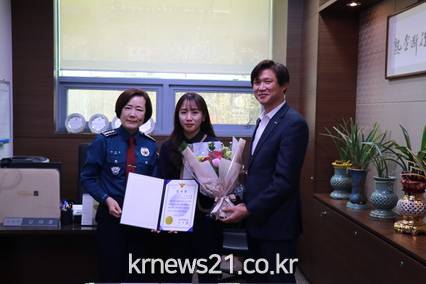 2018. 11. 19(월) 김포경찰서에서는 전화 금융사기(보이스피싱) 피해를 막은 신한은행 00지점 은행원 이00(28세, 여)에게 감사장과 포상금을 전달했다.