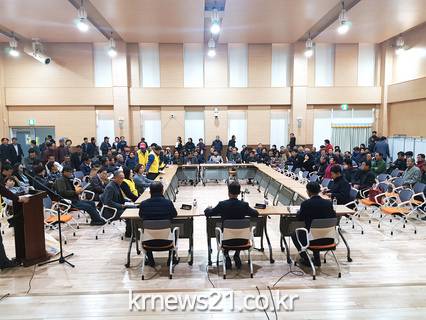 정하영 김포시장이 14일 오후 한강시네폴리스 사업지 내 주민들과 간담회를 갖고 김포시의 입장과 향후 방안에 대해 설명했다.