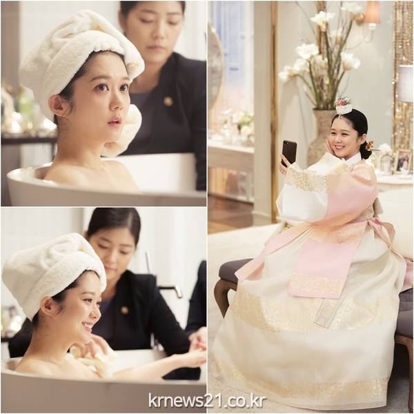 이와 관련 장나라가 청순미를 발산시킨 목욕재계 이후 완벽하게 꽃단장까지 마친, ‘러블리한 황후 오써니’의 자태를 드러내 관심을 모으고 있다. 극중 오써니가 본격적인 궁 생활을 앞두고, 호화로운 황실의 욕조에서 새하얀 수건으로 머리를 감싼 채 궁인들의 도움을 받으며 목욕재계를 하고 있는 장면. 목욕을 마친 오써니는 거울 앞에서 곱게 화장을 한 후 황후의 복장을 갖춰 입는가 하면, 침대 위에서 눈부시게 환한 미소를 지으며 한껏 행복해하는 면모를 보인다. 특히 장나라는 ‘목욕신’을 통해 뽀글뽀글 머리와 헐렁한 옷차림 속에 감춰왔던 청초한 여성미를 드러내 보는 이들의 시선을 멈추게 하고 있다.