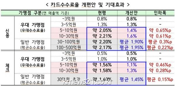 현재는 매출 5억원 이하만 영세·중소 가맹점으로 분류해 수수료율 우대 혜택을 제공하지만 지원 대상을 넓힌 것이다.