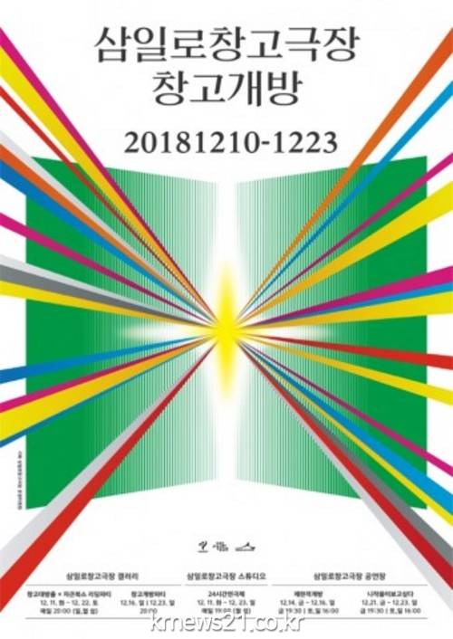 서울시(시장 박원순)와 서울문화재단(대표이사 김종휘) 삼일로창고극장이 12월 10일(월)부터 23일(일)까지 삼일로창고극장 운영위원회 기획 프로그램 ‘창고개방’을 진행한다고 밝혔다.