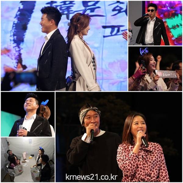 본격적인 무대가 시작되자 황미나는 ‘제 4의 멤버’라는 말이 나올 정도로 코요태의 노래와 댄스를 완벽하게 따라하는 모습으로 패널들의 감탄을 불러일으켰던 터. 무대 위에 선 김종민 역시 오직 황미나만 보이는 달달한 애정을 드러냈다. 특히 김종민은 행사 MC 고명환의 즉석 제안으로 갑작스럽게 무대 위로 올라가게 된 황미나와 등을 맞대고 선 채 수많은 사람들 앞에서 ‘Again 커플 인증’을 펼치며 ‘설렘 폭탄’을 투척했다.
