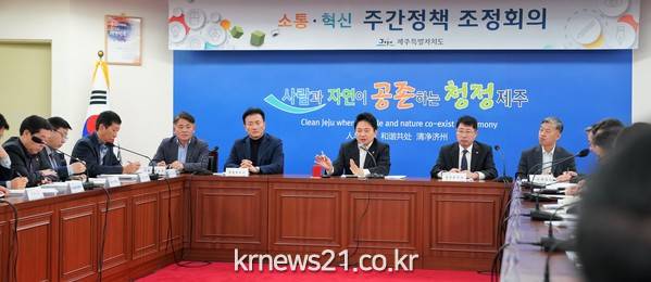 원희룡 도지사는 오늘 오전 8시 30분 도청 2층 삼다홀에서 열린 주간정책 조정회의를 통해 이같이 말했다. 이번 회의는 ‘2019년 시정연설 및 도정질문 후속 정책현안 점검’을 주제로 열렸다.