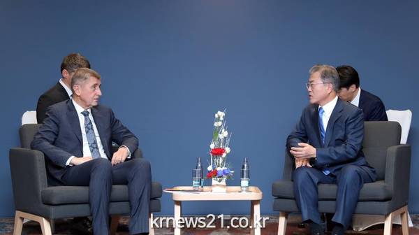 ▲ (사진=청와대)문재인 대통령은 11월 28일(현지시간) G20 정상회의 참석 계기로 체코를 경유 방문해 안드레이 바비쉬 체코 총리와 회담을 갖고, 한-체코 관계 발전 방안과 한반도 정세 등에 대해 협의했다.