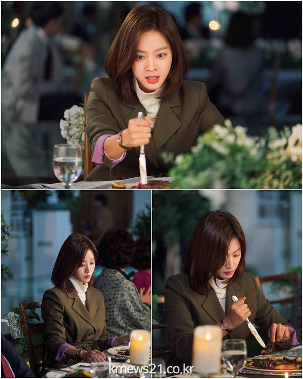 이와 관련 조보아가 주변의 시선은 신경 쓰지 않은 채 스테이크에 폭풍 분노의 칼질을 하는 모습이 포착됐다. 극 중 지인의 결혼식장에 간 손수정이 식이 진행 중인 와중에 라이프를 들어 조신하게 스테이크를 썰어 먹다가 이내 치밀어 오르는 화를 참지 못하고 갑자기 나이프를 스테이크에 팍 꽂는 장면. 더욱이 격한 행동에 주변의 모든 시선이 쏠렸음에도 불구하고, 손수정은 나이프를 불끈 쥔 채 야무지게 스테이크를 써는 모습으로 웃음을 자아낸다. 과연 손수정이 결혼식장에 와서 분노의 스테이크 썰기를 나선 이유는 무엇일지 궁금증을 유발하고 있다.