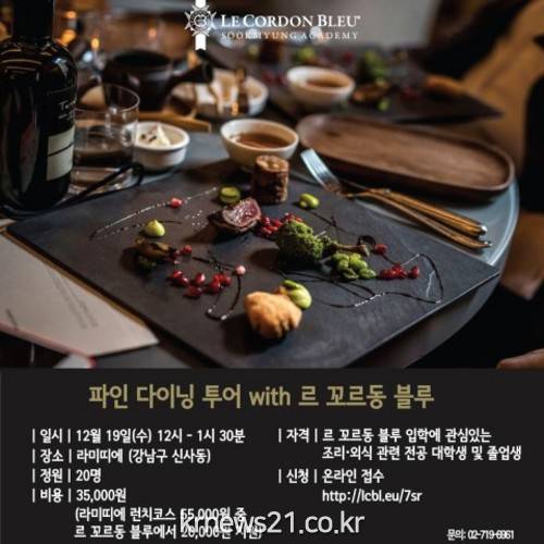 숙명여자대학교(총장 강정애) 부설 프랑스 요리·제과·제빵 교육 기관인 르 꼬르동 블루-숙명 아카데미가 19일 파인다이닝 레스토랑 투어를 진행한다고 밝혔다. 이를 통해 국내 파인다이닝 레스토랑의 전체적인 저변을 확대하는 데 목적이 있다.