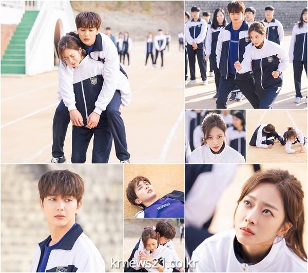 이와 관련 유승호와 조보아가 ‘체인지 어부바’를 감행한 모습이 공개돼 이목을 집중시키고 있다. 극 중 강복수(유승호)와 손수정(조보아)이 체육 시간에 한 팀이 되어 2인3각 경기를 하는 도중 손수정이 강복수를 업고 질주를 하는 장면. 경기 시작 전 강복수는 경기에는 관심 없다는 듯 심드렁한 표정을 짓고 있는 반면, 손수정은 이기겠다는 의지를 불태우는 결의에 찬 눈빛으로 준비 자세를 취해 보인다.