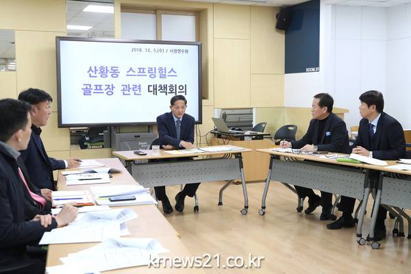 고양시(시장 이재준)는 5일 고양 스프링힐스 골프장 증설에 대한 대책회의를 개최하고 관내 산황동 골프장 백지화 범시민대책위원회(이하 ‘범대위’)의 주장에 대한 법률적 검토 후 시의 입장을 정리했다.