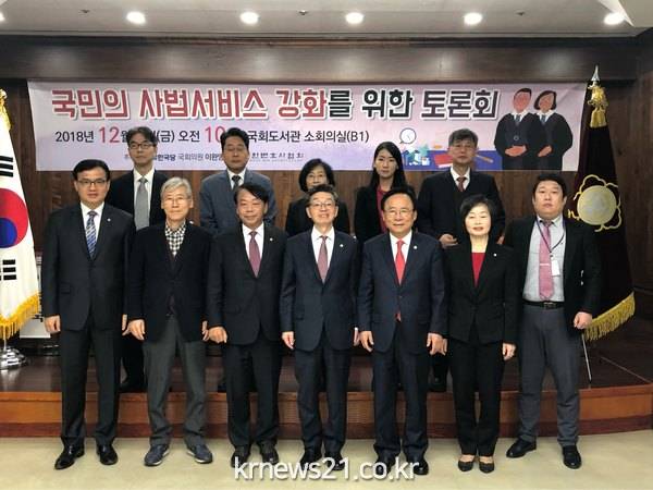 국회 법제사법위원회 이완영 의원(자유한국당, 경북 칠곡·성주·고령)은 12월 7일(금) 오전 10시부터 12시까지 국회도서관 B1 소회의실에서 대한변호사협회(협회장 김현)와 공동으로 「국민의 사법서비스 강화를 위한 토론회」를 개최했다.