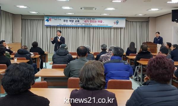 ▲ 주민자치 역량강화 교육 장면보령시 웅천읍은 지난 12일 웅천 복지관 2층 회의실에서 웅천읍 주민과 대천4~5동 주민, 웅천 농협 관계자 등 200여 명이 참석한 가운데 주민자치 역량강화 교육을 실시했다.