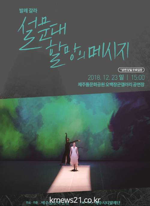 ▲ (사진=제주자치도청)제주돌문화공원관리소에서는 오는 12월 23일, 오백장군갤러리 공연장에서 제주시티발레단(단장 김길리)의 ‘설문대 메시지’ 발레 공연을 개최한다고 17일 밝혔다.
