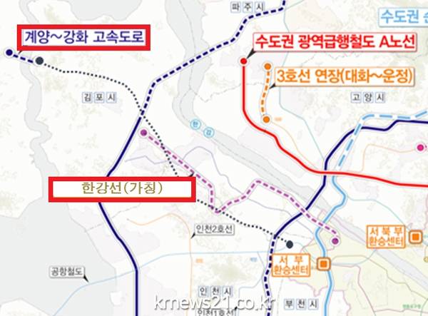 * ‘김포-계양’ 구간은 계획 중, ‘강화-김포’ 구간은 검토 중(미정)